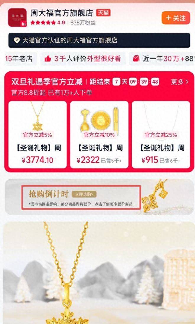 近日,周大福天猫官方旗舰店在首页发布了一条提示:受市场因素影响汇操盘,部分商品即将提价。